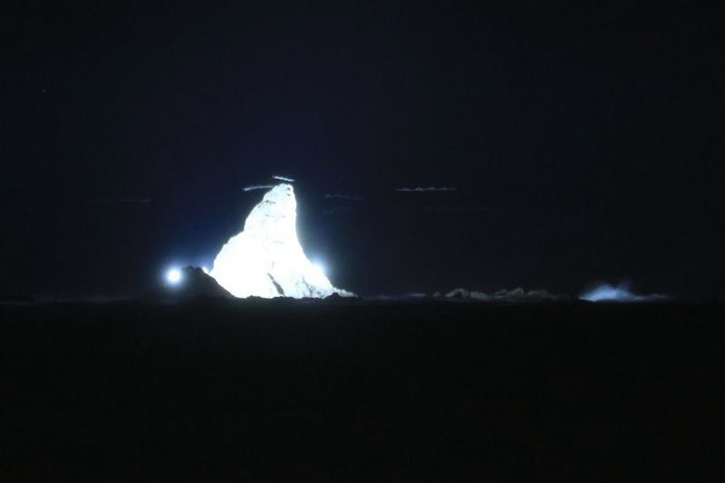 今年はLED投光器を使用して少し離れたところから烏帽子岩を映し出しました。